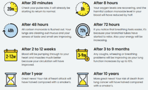 The sooner you quit, the sooner you’ll notice changes to your body and health. Look at what happens when you quit for good below.