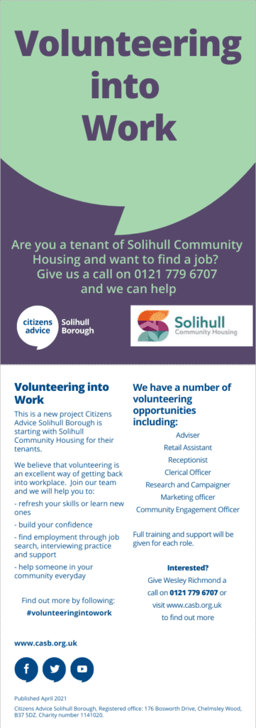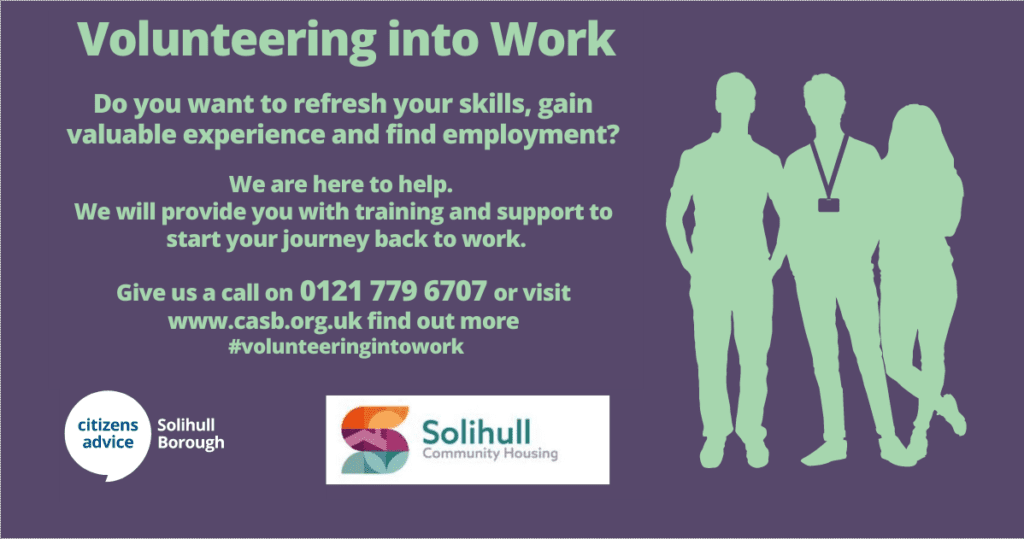 Visit Citizens Advice Solihull Borough website or call Wesley Richmond on 0121 779 6707.